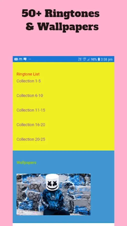 The best part of My Marshmello Ringtones is the simple setup process. You can download songs to your device and set as ringtones, message tune or alarm tune for your phone.