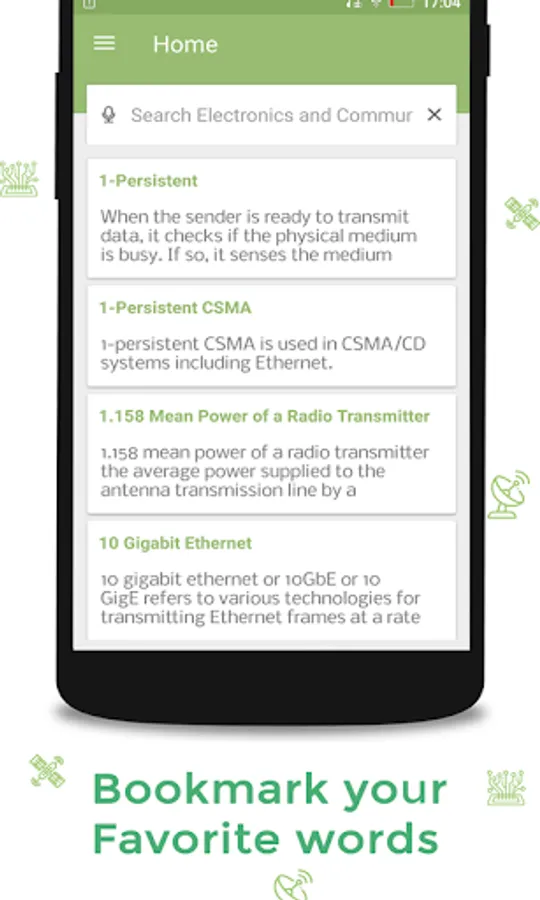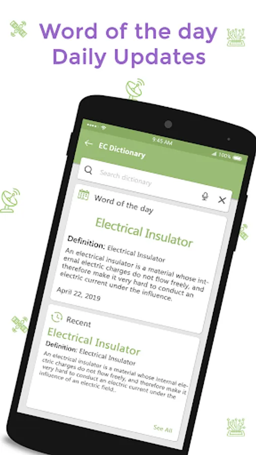 Launched with more than 6000 Electronics Dictionary Terms and various Electronics Calculators, this Electronics & Communication engineering dictionary is a perfect guide for all your queries whether you are a college student, professor or an electronic lover. For quick and SMART learning offline Electonics & communication dictionary application has lots of Electronic diagrams and Equations.