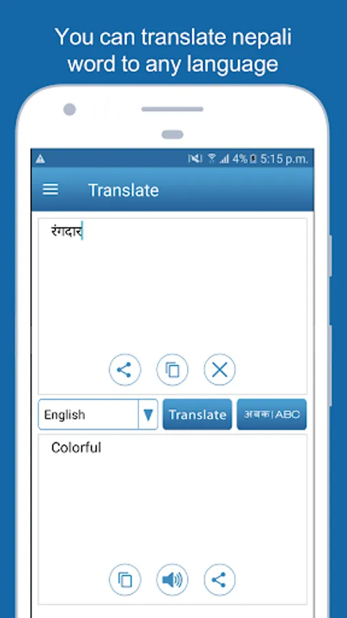 - you can Translate any English or Nepali Word in any other language like Spanish, Russian, Japanese, Chinese and many more languages.