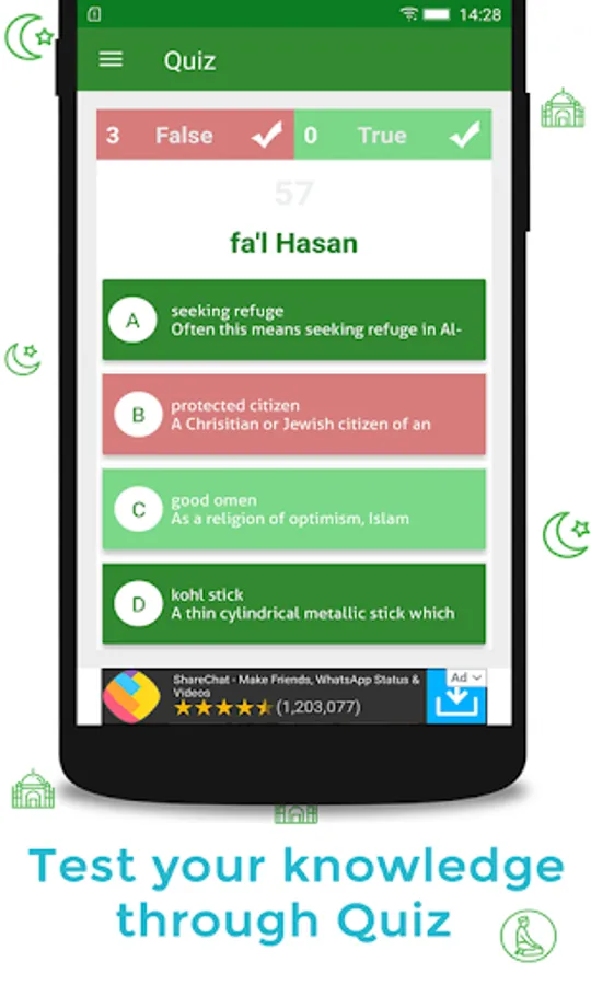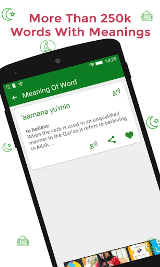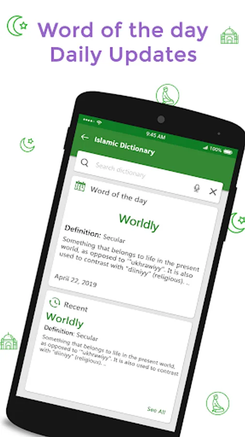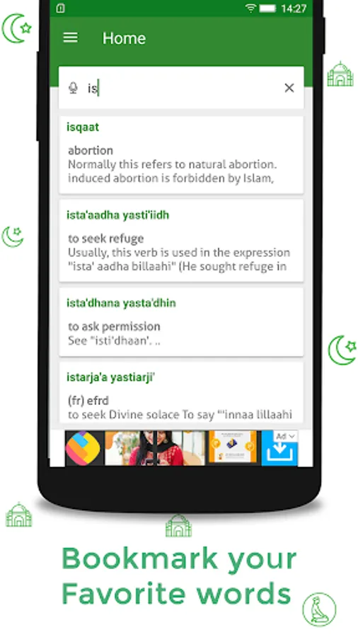 This mobile dictionary app designed to help Muslim speakers to learn and improve their English language skills.