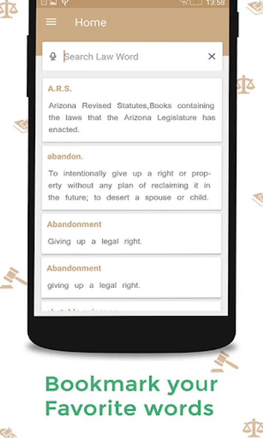 Law Dictionary Offlineis for Lawyers, advocates, Legal Assistants, Analysts, Legal Recruiter and Law Students to search all the law terms along with their definition and explanations in a second. Legal Law Dictionary is absolutely free, offline and unique browsing application contains thousands of law terms and their detailed meanings as well as major abbreviations.