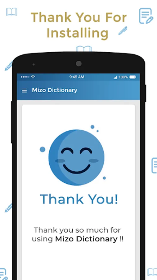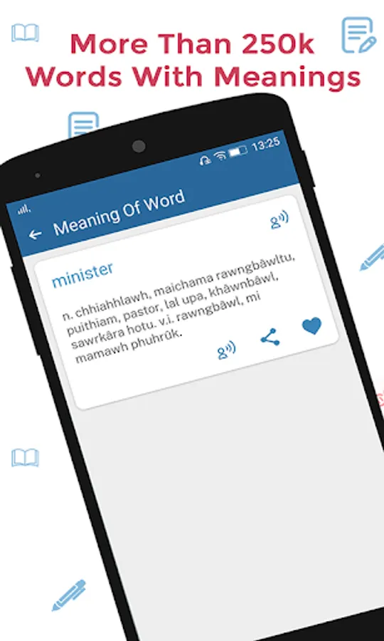 So, improve your education and speaking skills, unlock new words and phrases and achieve more by using Mizo English Dictionary. Learn and speak Mizo to Hindi easily. Achieve your goal of Speaking in mizo. Mizo dictionary is made to teach you new words and phrase easily.