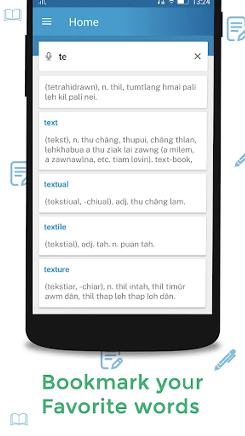 Mizo to English Dictionary is the best Mizo dictionary for English learning, This is best application who want to learn mizo words and want to take command over language. You can learn Mizo language by taking free education app of English to mizo translation and mizo to English translation.