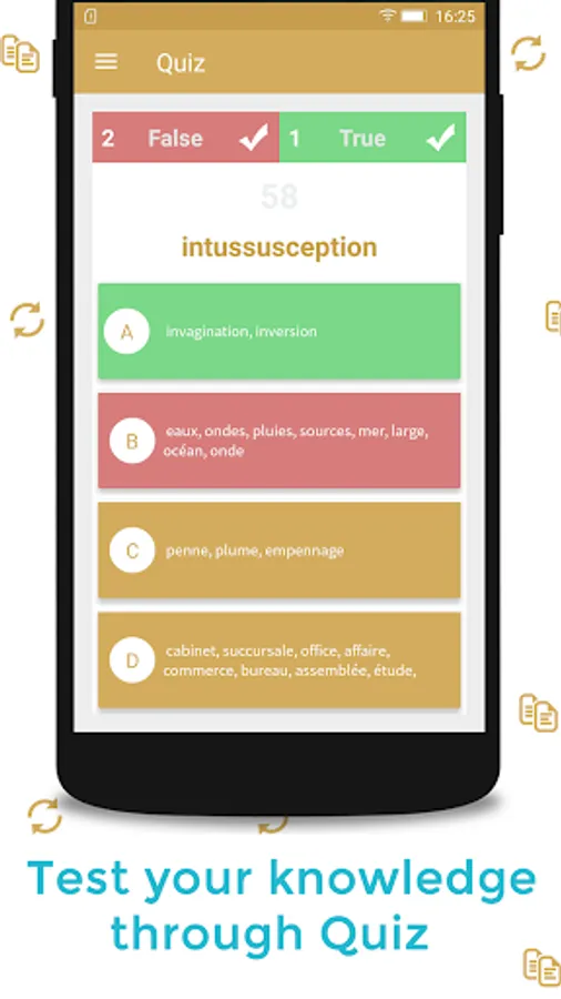 This app will help you to grasp French Synonyms, understand the difference in phrases and how to use a word in proper context.