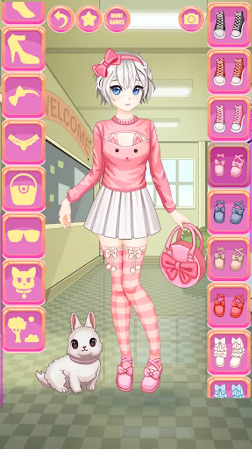 Categories of this clothes game- skirts, dresses, hairstyles, shirts, tops, jackets, cute accessories, shining jewelry, necklaces, handbags, leggings, tights and more! Plenty of Tokyo styles has been mixed for the young fashionistas: Gyaru, Lolita, Kogal, Ganguro, Bōsōzoku, Decora, Kuroi Niji, Mori Girl, Kimono and sure Visual kei (oshare, angura, cult party, dolly, fairy). Nowadays it's common outfit for modern asian youth aged from high school to college.