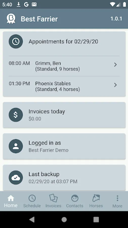 Best Farrier is a scheduling and invoicing app for farriers, built for mobile devices, that helps you run your business efficiently on the go. All your business information is in one place, easily and conveniently accessible wherever you are.