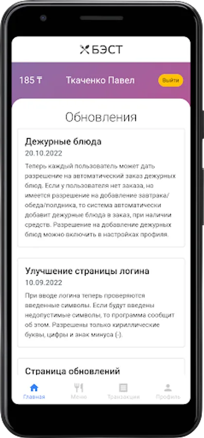 The application "Food BEST" allows you to quickly and conveniently order meals in the dining room OFRO "BEST". The application is available for students, teachers and employees.