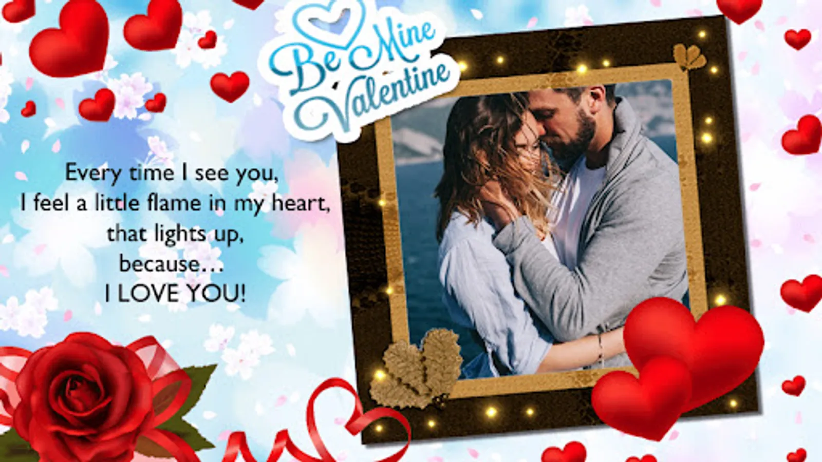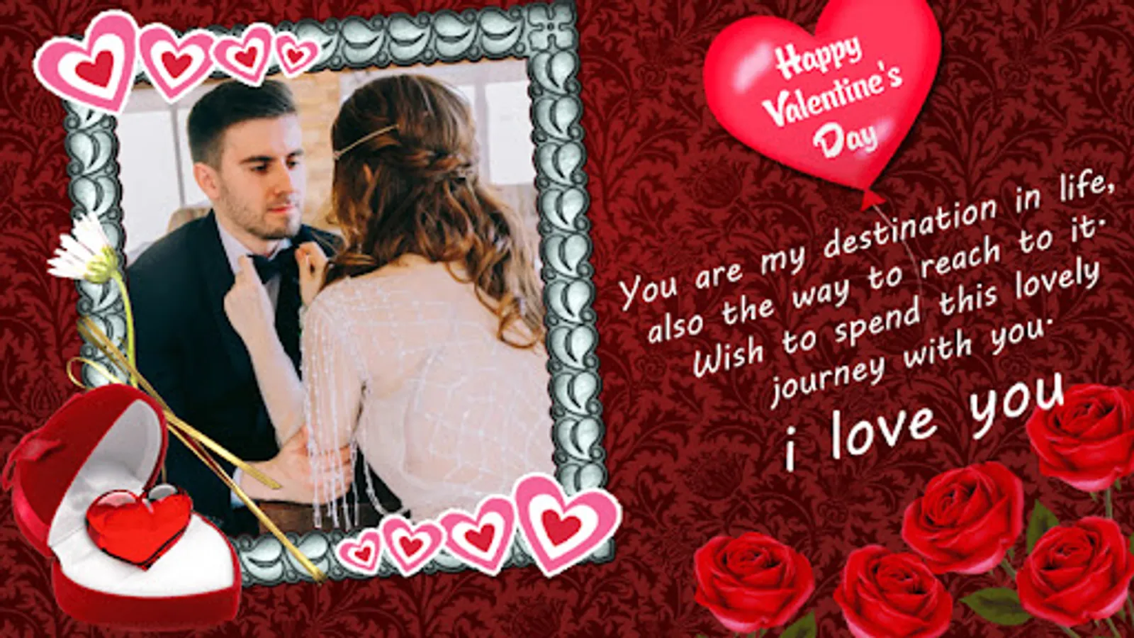 Create amazing Valentine Love pictures with HD Valentine photo frames and valentine's day Quotes. It helps you to select a romantic Valentine frame and upload your Valentine pic in it. Decorate with some Valentine stickers and Valentine text. It helps you in creating the valentine greetings with romantic images. Decorate with Valentine frames stickers and valentine text to look more beautiful valentine greetings.