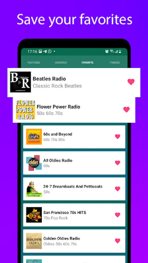 Downloading our music application from the 50s, 60s, and 70s and you can quickly enjoy the radio stations it contains and other different functions that you can use today and that are used by demanding users around the world.