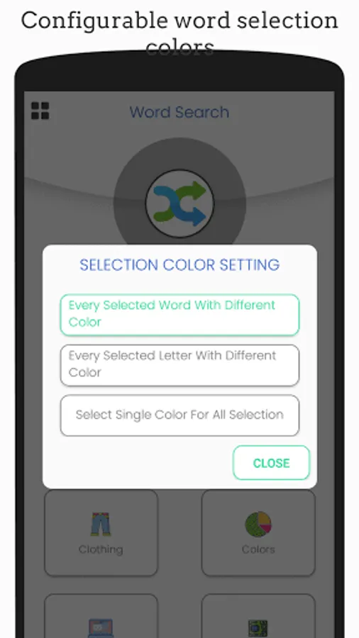 -Colorful word selection (Setting available for change to single color or multiple color)
