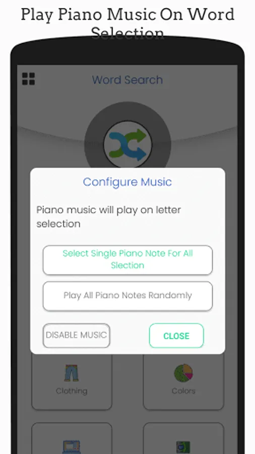 -Unique Feature : Piano tune music(SFX) at word selection (Setting available for play single piano tune or multiple paino tune)
