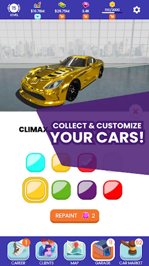 Throughout the game, you will have an opportunity to expand your business and build a car empire! Face many business challenges and learn entrepreneurship. Purchase rare cars, attract customers, negotiate with them, unlock facilities, and even organize classic car shows!