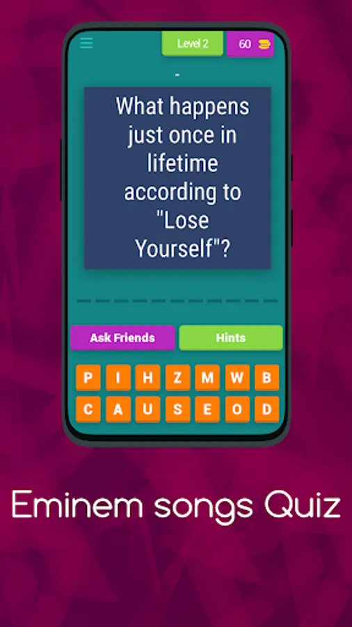 The guesswork gets even more interesting as you unravel and decode hints and clues embedded in the lyrics of Eminem's songs. Unveil all the surprises by guessing right and become the real Rap God!