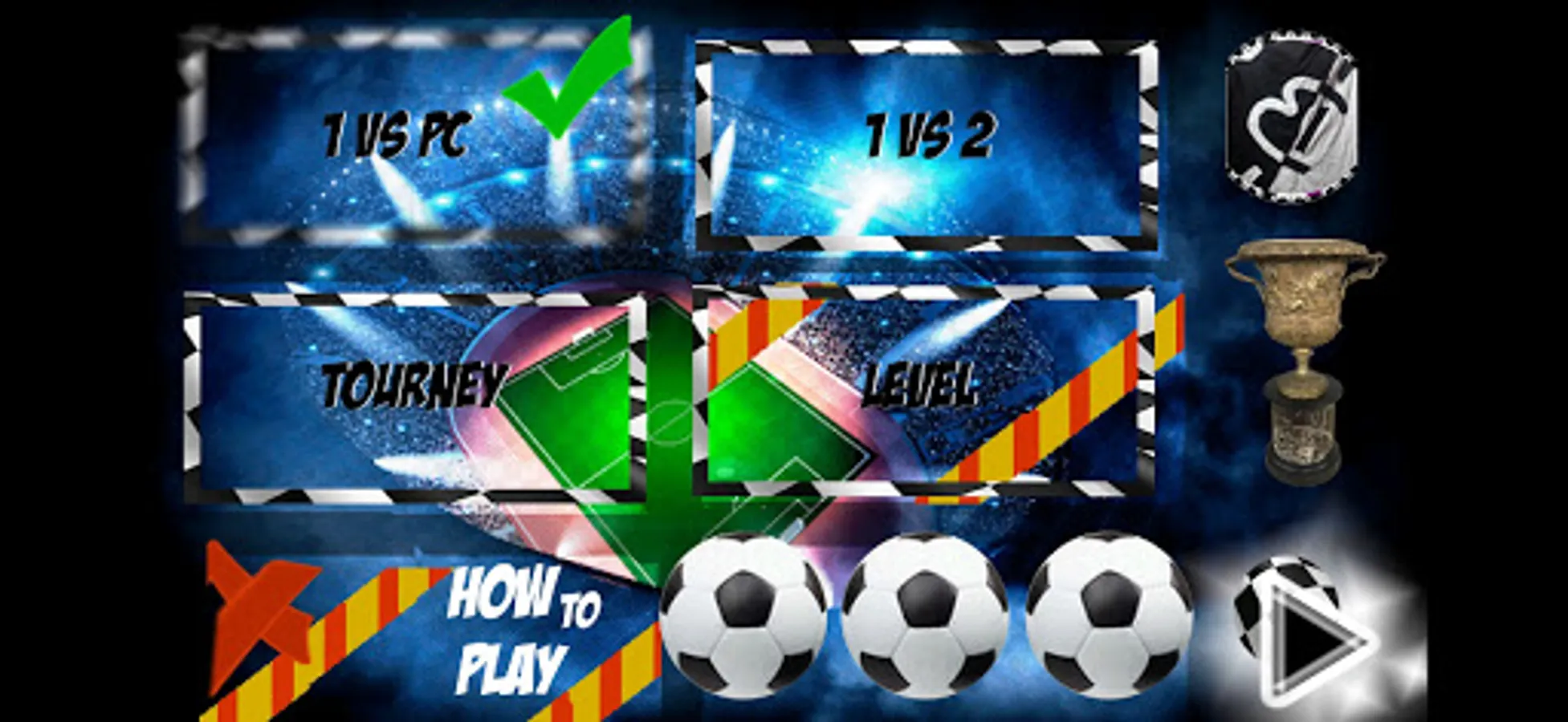 There are three balls and to win you must make a goal. To advance you must pass the balls through the middle of the other two.
