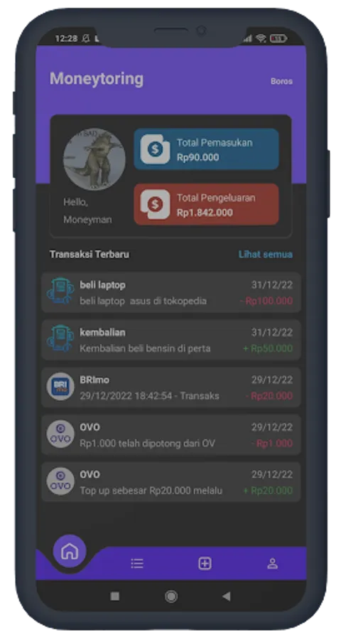 Automatic e-wallet or mobile banking transaction recording application through notifications