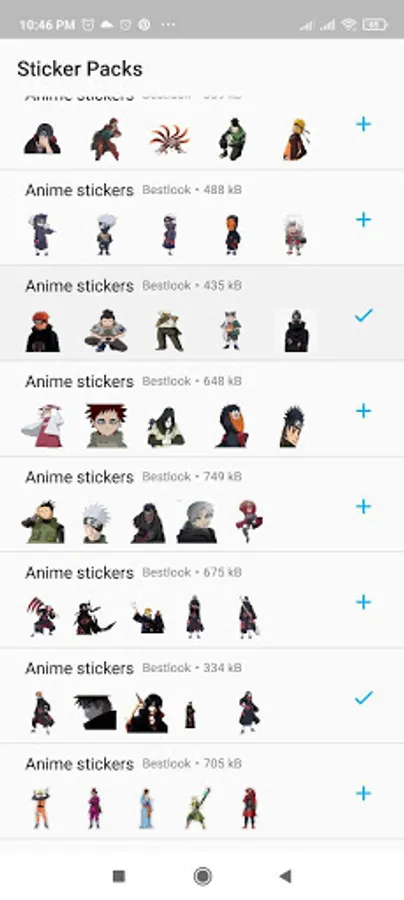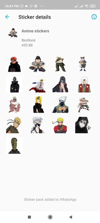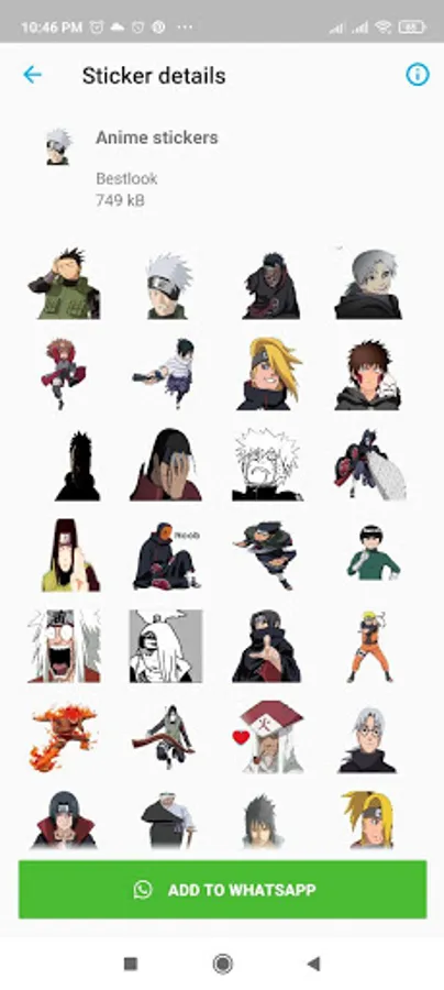 2º Choose your favorite pack of Anime, click and click on WhatsApp