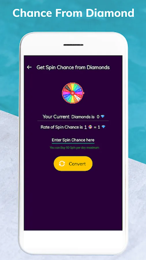 * When you don't have enough spin chance to play a game then you can get a free chance from your collected diamonds.
