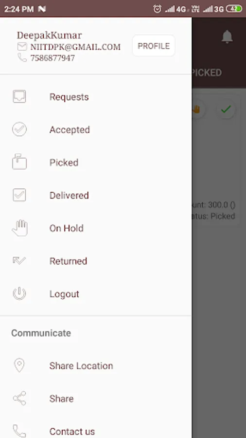 You can book a courier from Android App within one minute and arrange your delivery without any unnecessary paperwork and without making calls 24/7.