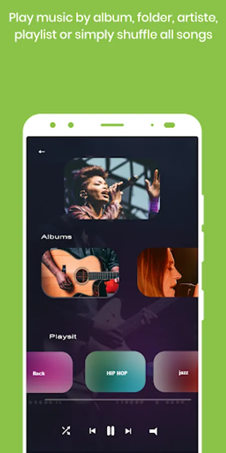 1. Browse songs by playlist, by genre, by folder, by artist or by album.