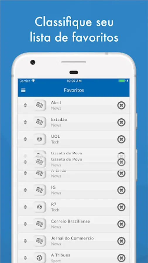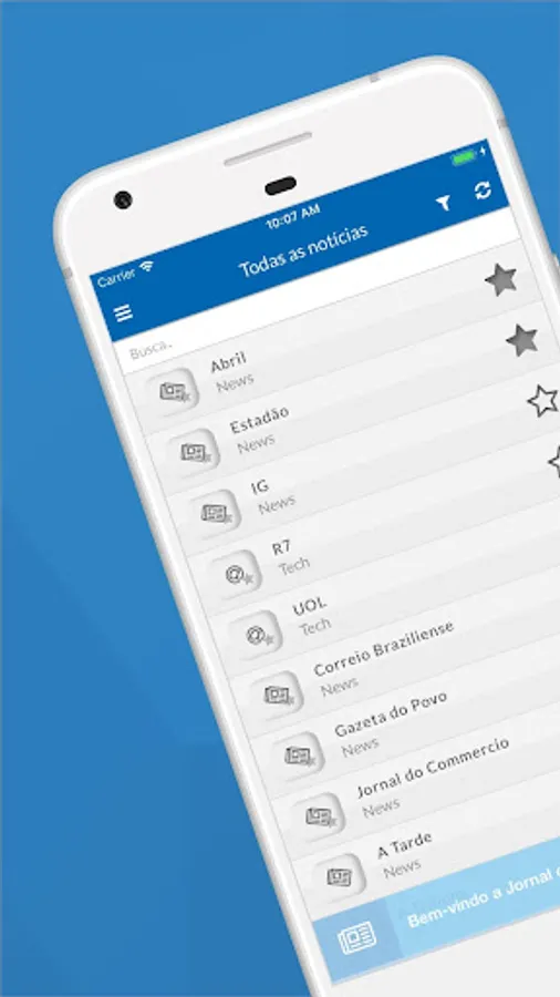 Some of the newspapers you can find are: A Razão, A Tarde, A Tribuna, Abril, AFP BR, BBC Brasil, BOL, Carta Capital, clicRBS, Climatempo, Correio Braziliense, Correio do Estado, Diário Catarinense RS, Diário Catarinense SC, Diário Corumbaense, Diário do Amazonas, Diário do Grande ABC, Diário do Nordeste, Diário do Pará, Epoca, Estadão, Exame, Extra, Folha de S. Paulo, G1, Gazeta do Povo, Gazeta Online, Globo, Globo Esporte, GOAL Br, Google Notícias, Hoje em Dia, Info Exame, Jornal de Londrina, Jornal de Maringa, Jornal do Brasil, Jornal do Commercio, Lance!, Meio Norte, NewsNow Brazil, O Dia, O Globo, O Popular, O Povo, O Vale, OTempo, Paraná, R7, Reuters, Terra BR, Topix Brazil, UAI, UOL, Valor Econômico, Veja, Yahoo News...