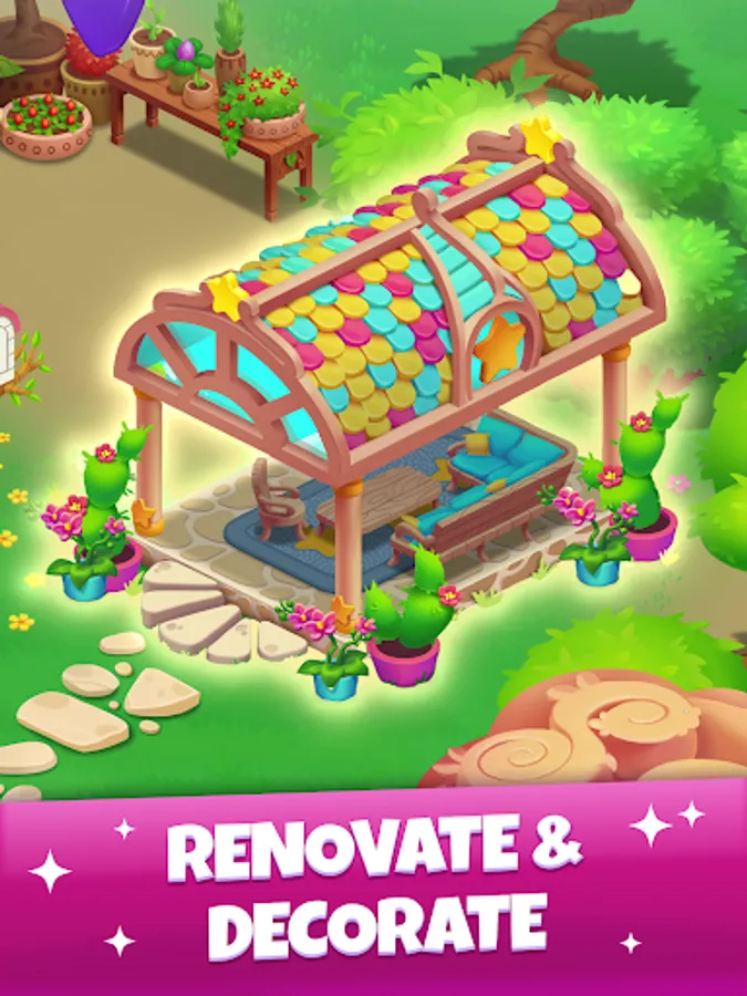 Tile Yard: Matching Game isn’t only about tile match puzzles, it also includes renovation and decoration of beautiful landscapes. Make yourself a cup of tea and get down to perfect zen match puzzles. Play tile-matching levels to earn coins – use them to renovate the perfect yard. Take a break from routine and find your peace in Tile Yard: Matching Game. Enjoy your time with zen match puzzles and relax.