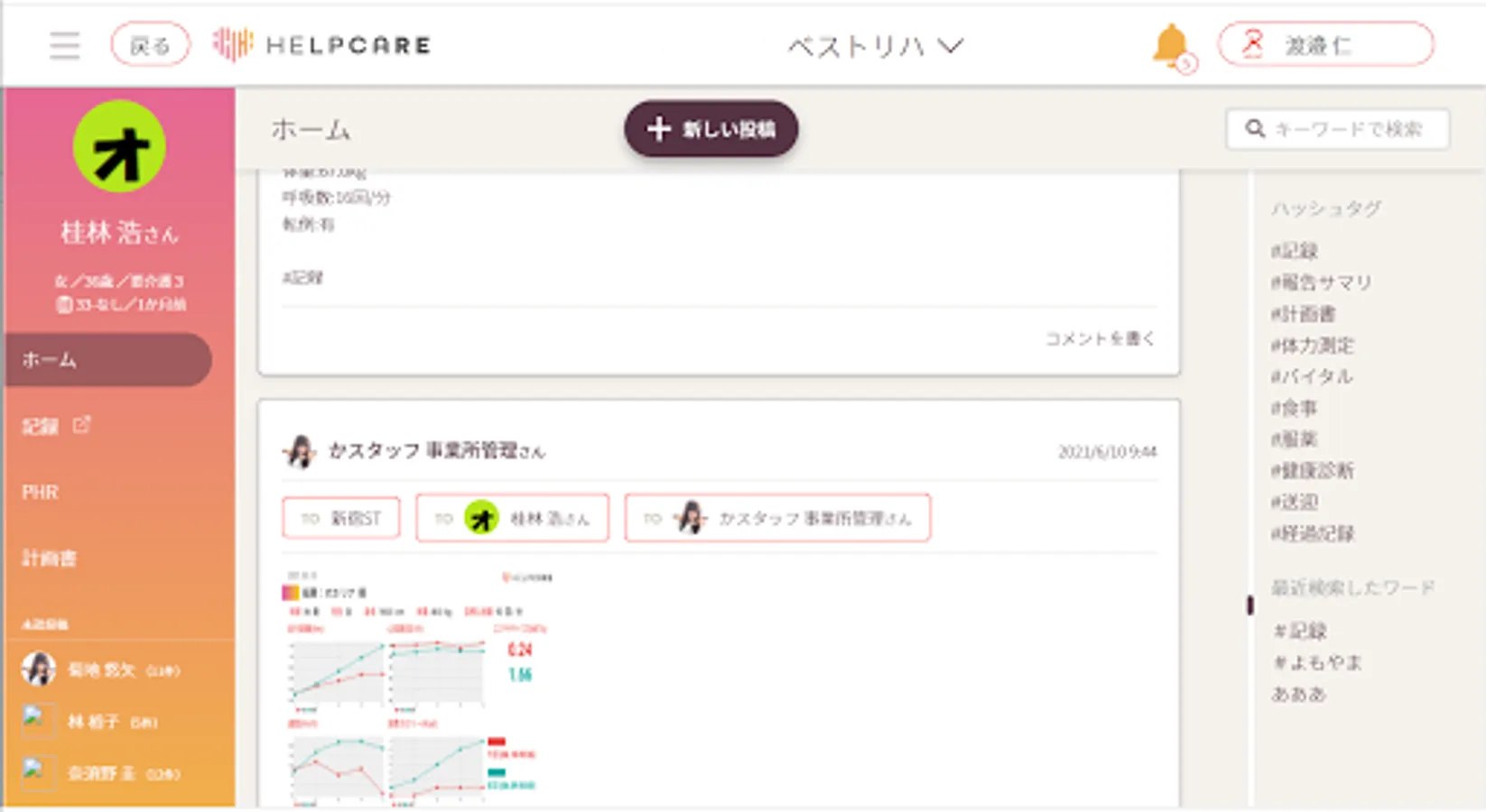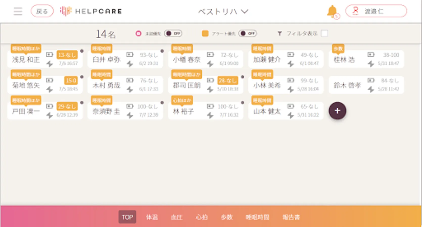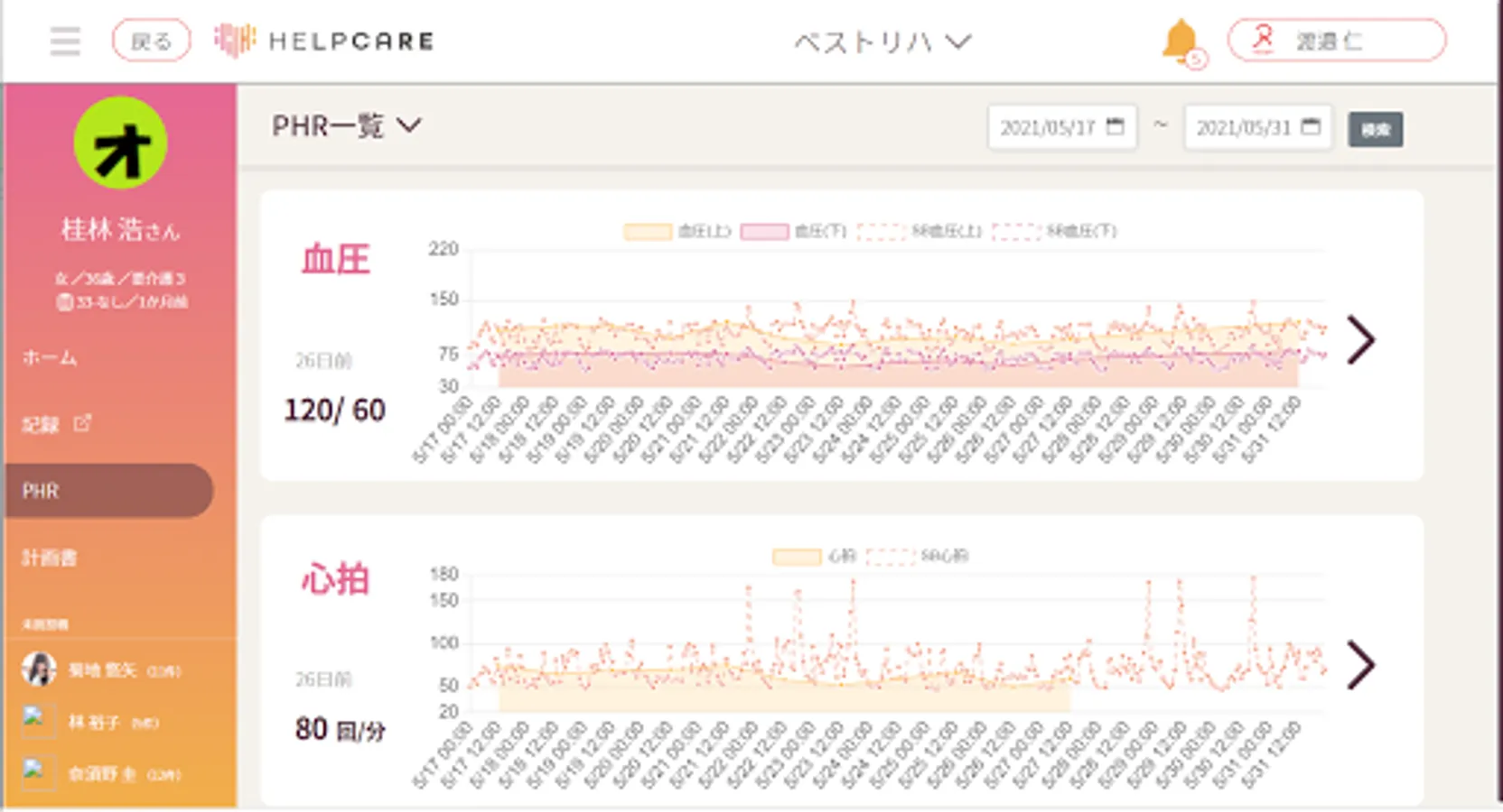 It can measure daily blood pressure, heart rate, sleep, number of steps, etc., and can be used for nursing care work such as care records.