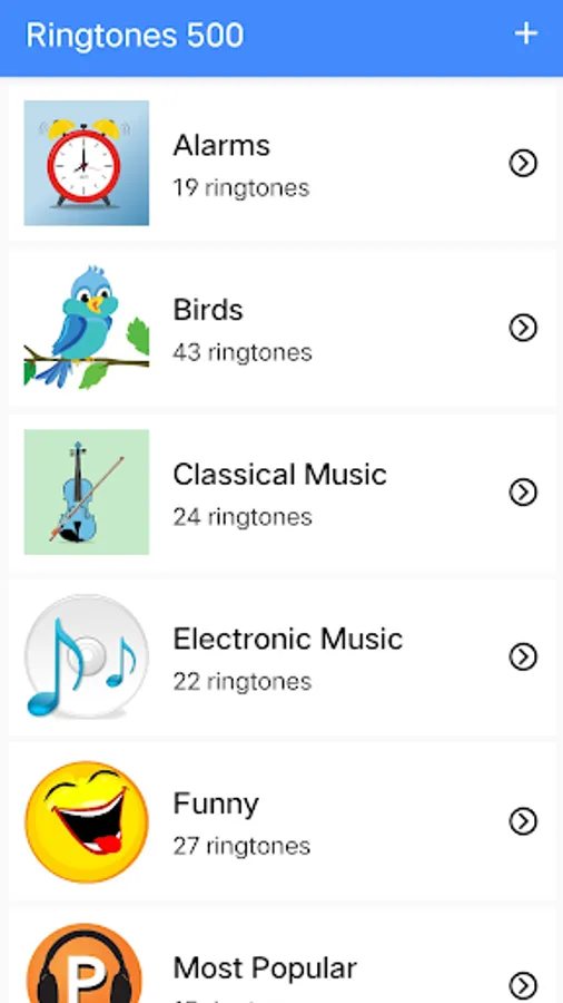 This APP provide you more than 20 categories ringtones, including alarms ringtones, birds ringtones, classical music ringtones, electronic music ringtones, funny ringtones, most popular ringtones, nature ringtones, notification ringtones and old telephone ringtones.