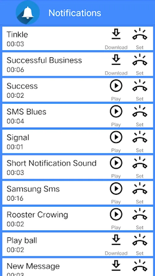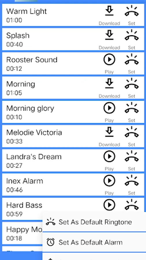 You can set them as default ringtone, alarm and notification easily. The ringtones are stored in the cloud, you just need to click list item to download and listen to the ringtone.