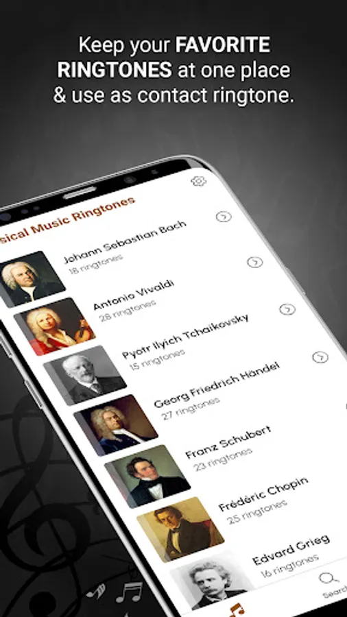 🎶 A fan of having classical music as your phone ringtones? A lover of Beethoven, Bach or Mozart? You are at the right place because Classical Music Ringtones for Android™ offers you the best mobile ringtones and top classical music. 🎶