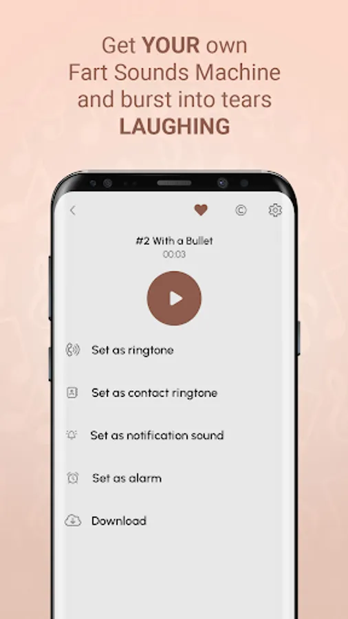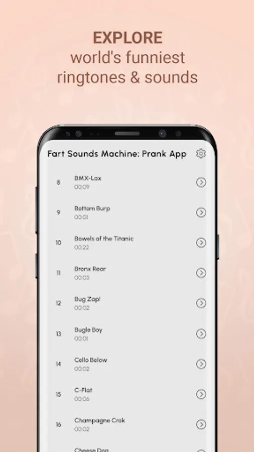 Fart Sounds Machine - Prank App, a free ringtone app for Android™, for you and your friends! With all these fart noises, fart sounds and fart ringtones you will be able to make a joke out of everyday regular situations! Don’t let your life be plain, DOWNLOAD Fart Sounds Machine - Prank App and live longer with laughter!