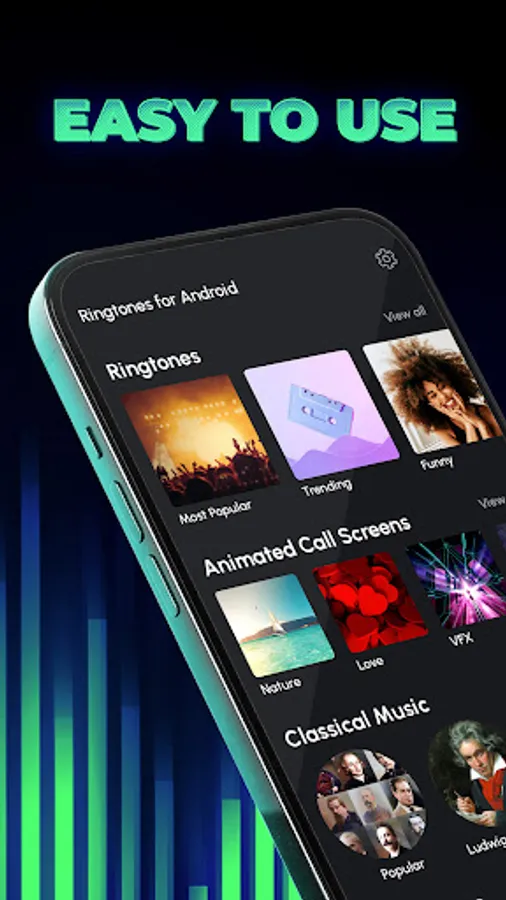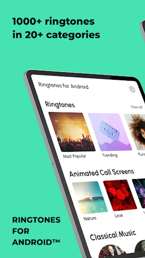 Ringtones for Android™ helps you to easily personalize your phone with music ringtones and HD wallpapers. Over 50 million people rely on phone ringtones, sounds and wallpapers in Ringtones for Android™. Discover why. Download your music ringtones and wallpapers and set a ringtone now.
