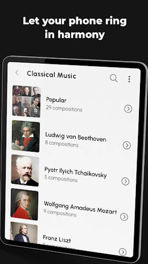Free Ringtones for Android™ app now offers an mp3 music player for an even more unique ringtone experience! Mp3 player is the latest feature available exclusively for classical music ringtones and bird sounds categories. Enjoy the full-length sound of your favorite classical music compositions and your favorite composers by playing it on your mp3 music player! Or simply relax by listening to numerous bird sounds using the same functionality.