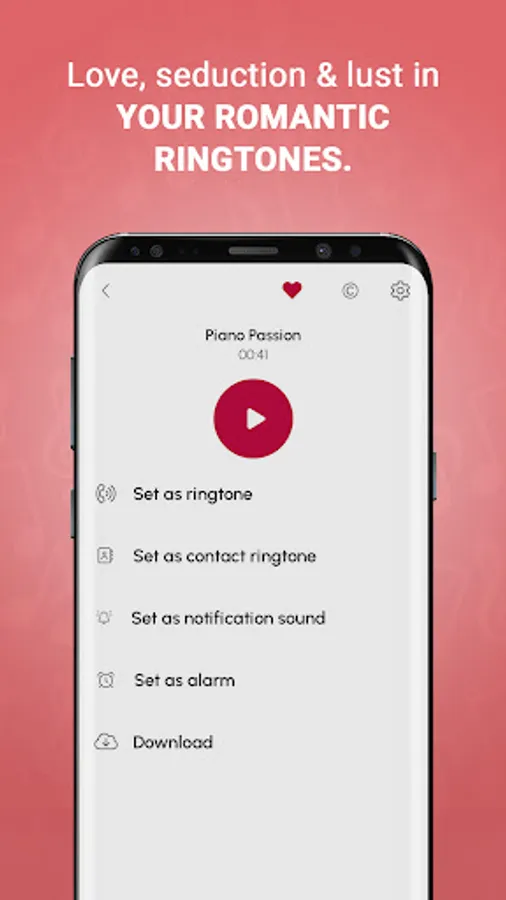 Easy to use & free to download, Love Ringtones & Romantic Music is a phone ringtone app for all ages. Whether you are looking for lovely romantic ringtones to express your deepest feelings or you're just a romantic soul, this free ringtone app with love ringtones and songs is what you need. Choose the love wallpapers and ringtones you like best and share them to the ones that make you feel that love and romance.
