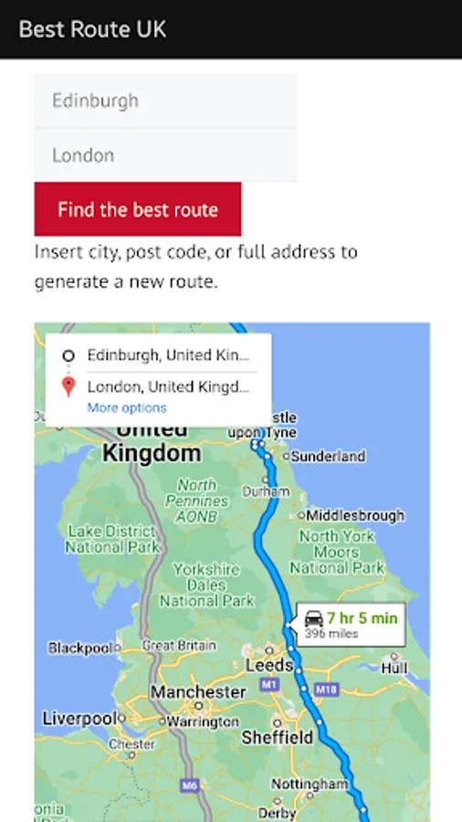 Our route planner is an app that helps you get driving directions between two cities. Our goal is to provide the best route between your origin and destination and make it as simple as possible for you to navigate.
