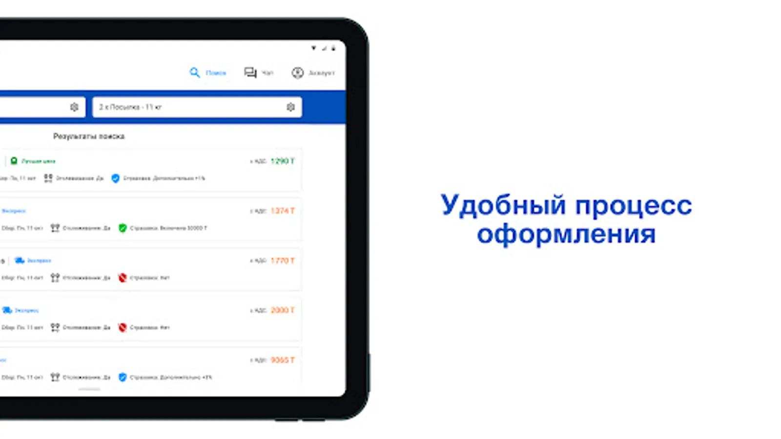 We do our best to make the process of choosing a courier or transport service as simple and convenient as possible, choosing, comparing, ordering and tracking shipment online. Also from 9:00 to 18:30 a chat with the support team is available.
