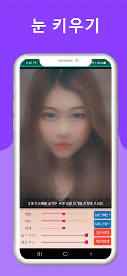 ② Adjust the eyes and face to the size you want through the various adjustment bars at the bottom and save the photo.