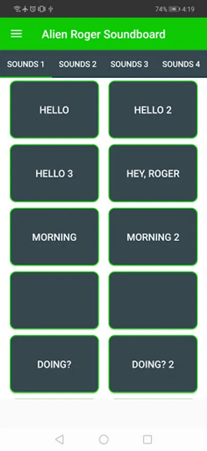 Alien Roger soundboard application contains various sounds from Roger. Also you can set as ringtone, notification tone or alarm tone these Alien Roger sounds and phrases. Enjoy it