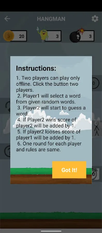 Hangman comes also with a 2 player mode where you can write your own word and play with your friends and family. Choose a word and enjoy the game with unlimited words. Really fun mode!