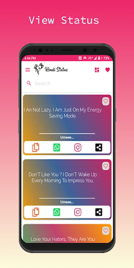 Hindi Status App brings you the best Hindi status and Hindi quotes for your friends. you can share quotes as a text , message , shayari. New Attitude Status Hindi with brings you Latest entertainment for you.