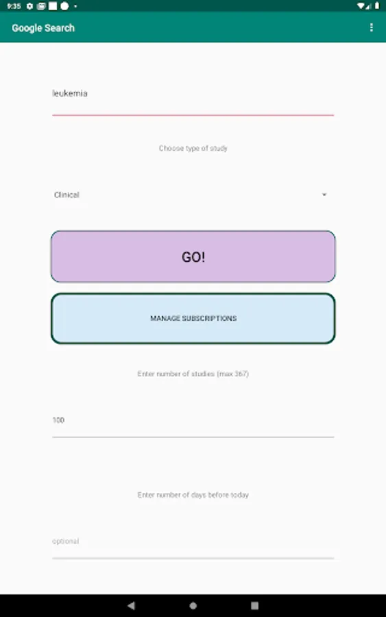 Google is by far the most powerful search engine and is a common platform professionals in biomedical and other fields use to retrieve information on a constant basis. Even though the text searching capability of Google outsmarts any search engine, it does not take into account the quality and importance of the studies returned. This app combines Google's power with: