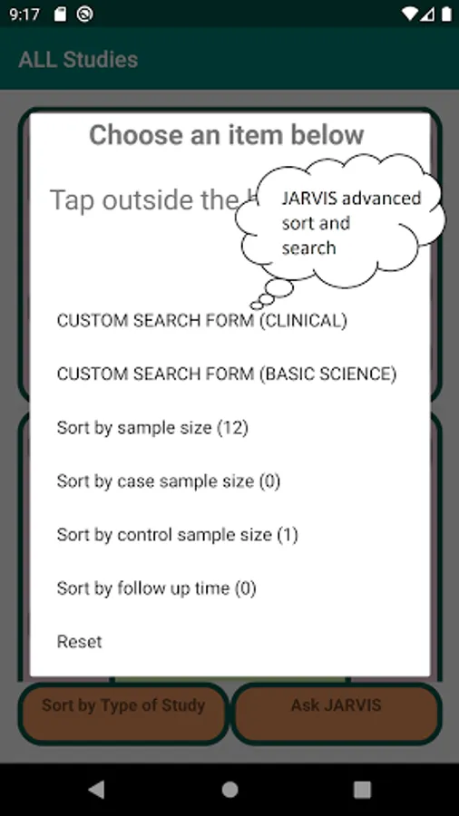 1. Ability to sort by quality of the study as measured by the journal impact factor and sample size of the study