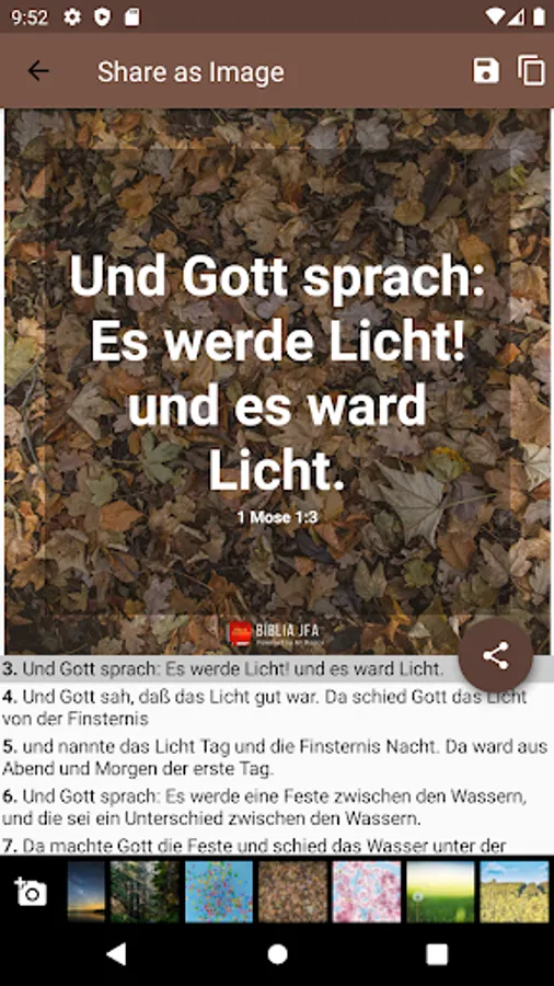 - Share verses (E-mail, Twitter, Facebook, SMS)