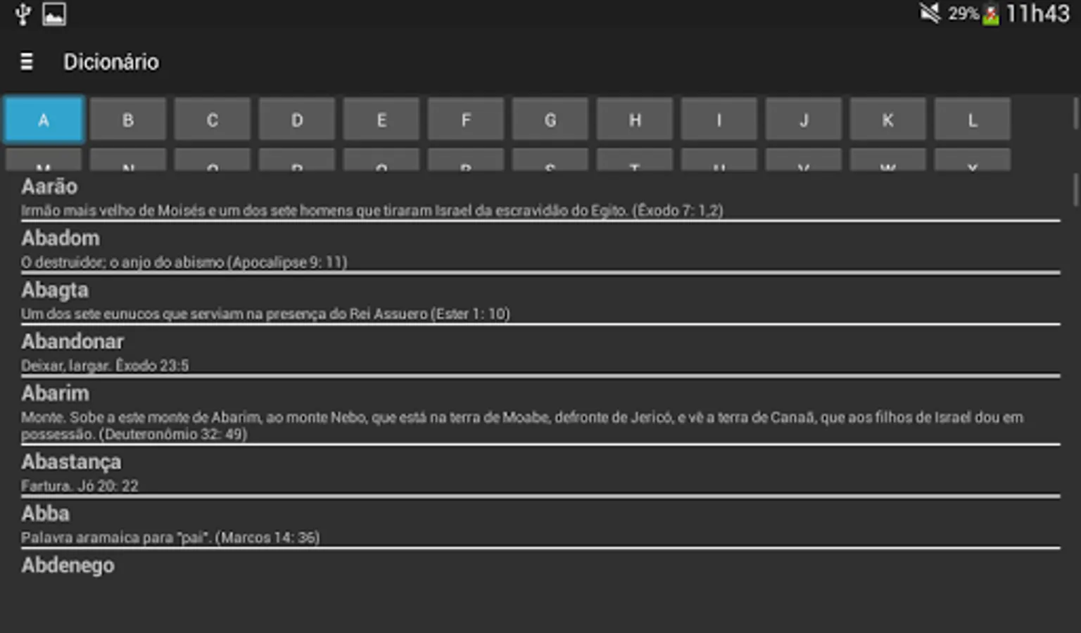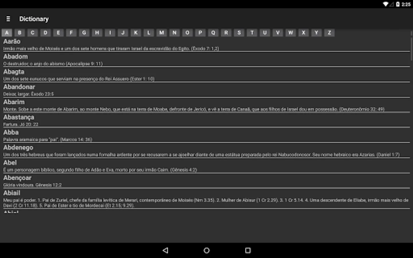 o Bible themes: find verses according to different topics. It works like a biblical key. There are more than 700 themes.