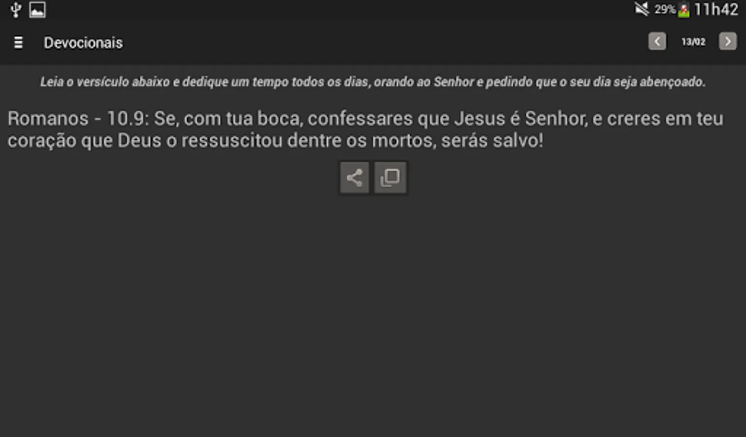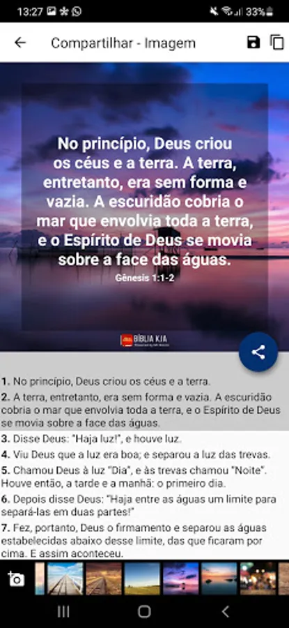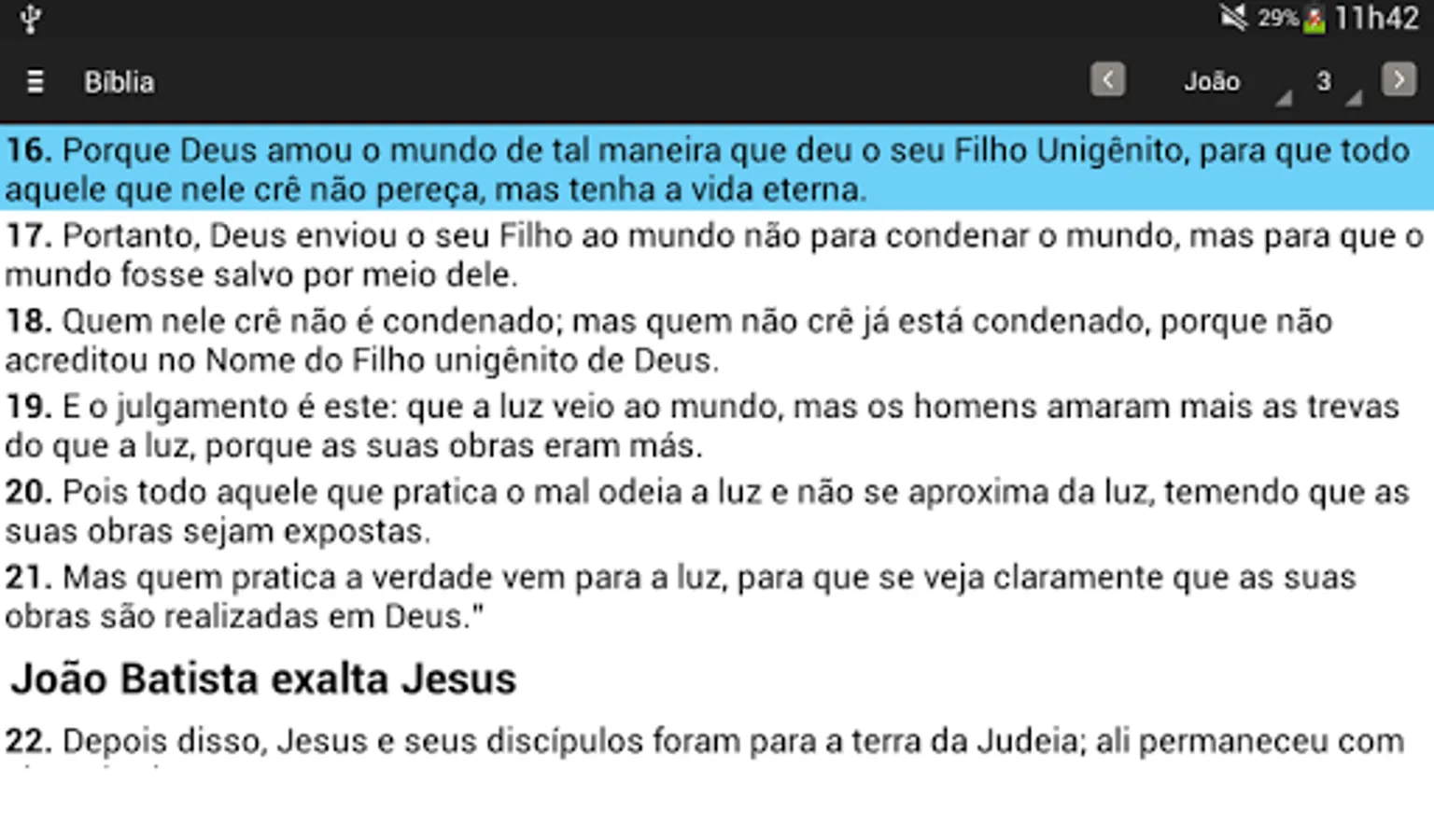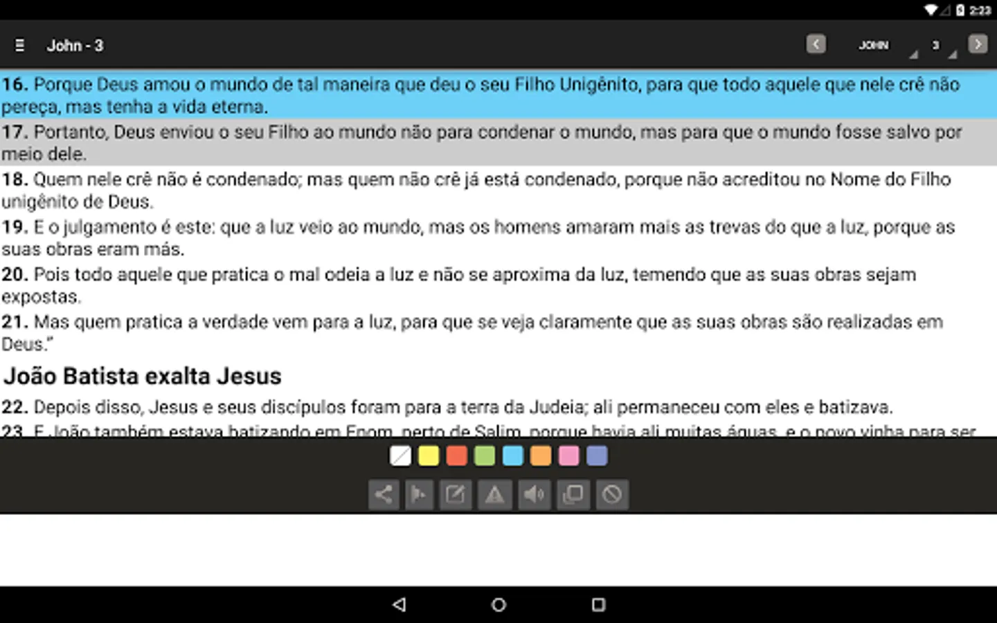 o Versicle: resources to emphasize, to mark by colors and to copy; making personal notes; verse widget of the day; sharing on Facebook, Twitter, Whatsapp, email; sharing of verses with images for publication on Instagram and other social networks.