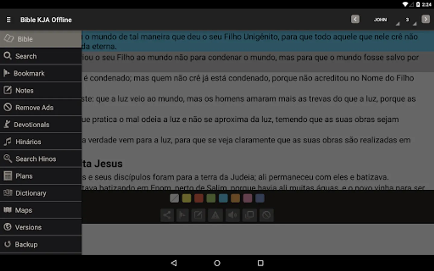 This is the version of the Bible that comes loaded with the updated King James translation in Portuguese completely free and available offline.