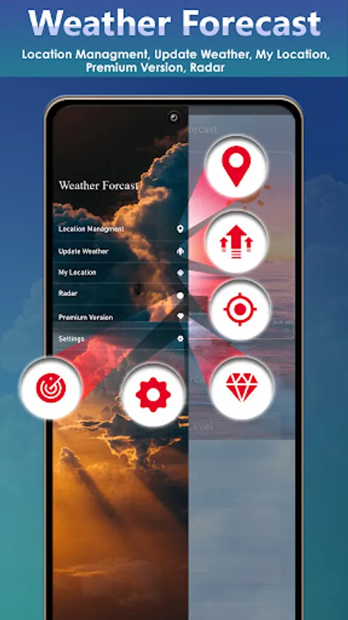 Drawer in weather forecast live weather & radar include very detail settings, location management in weather forecast app allow user to add multiple location in app and can check weather update on one click. Tap on update weather and now user can see updated local weather forecast.my location allows user to get exact weather detail as per GPS real time weather update, Multiple cool 7 weather radar widgets, weather widget are very cool, best weather app for android. Setting includes unit, multiple languages weather app, four language, best weather data app, Currently we offer language south Korean weather app, France weather app, German weather app and japan weather app.different styles of date format are also available in weather app, live weather and radar. User also can manage notification in setting.