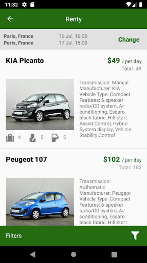 ★ Easy to find what you need - choose the best option using popular filters (transmission, manufacturer, average consumption, bags count, number of passengers etc.)