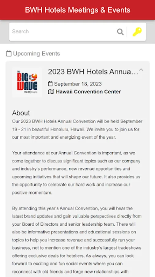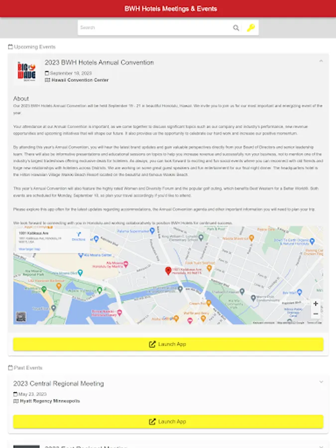 Each year, we come together in the spring for our District Meetings and in the fall at our Annual Convention. These meetings are where you can learn about key brand initiatives and add your voice in shaping Best Western’s future. It also gives us the chance to work collaboratively to overcome our business challenges and to take advantage of new areas of opportunity. This mobile app will help you navigate each of our upcoming meetings and learn important event information.