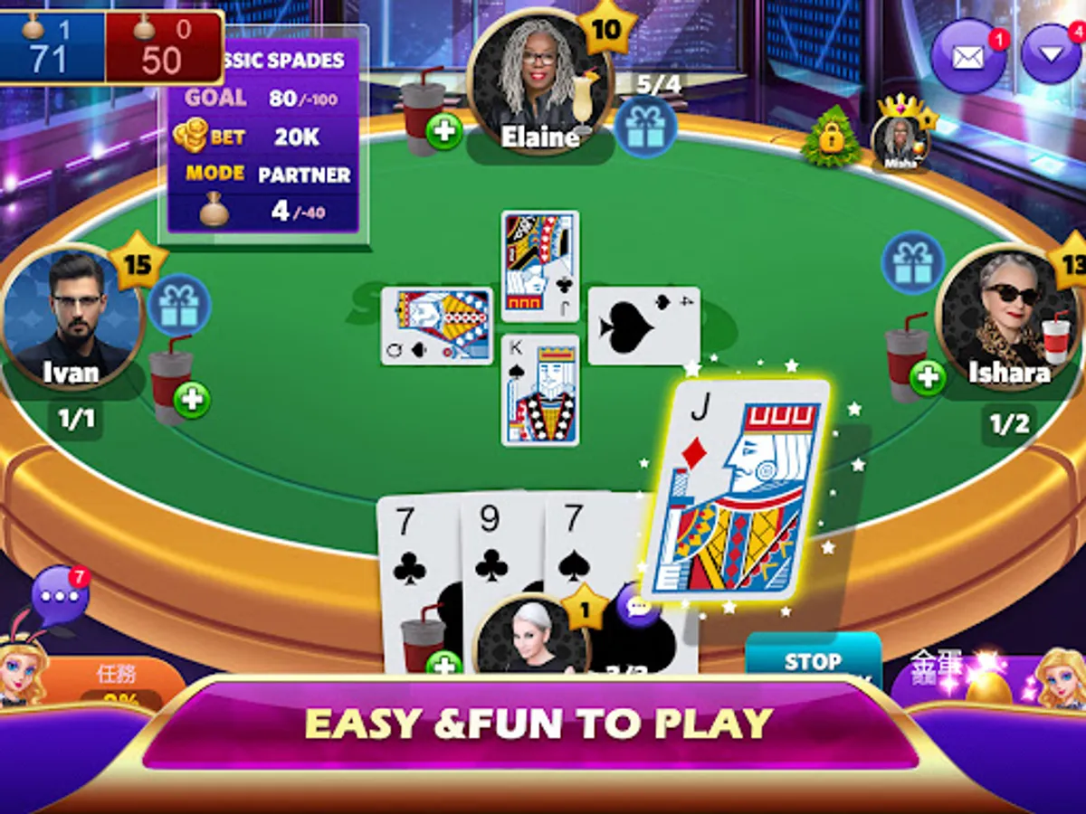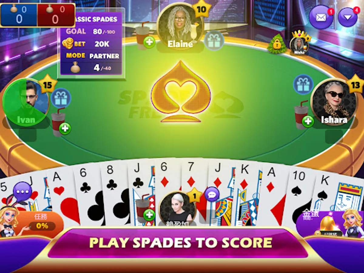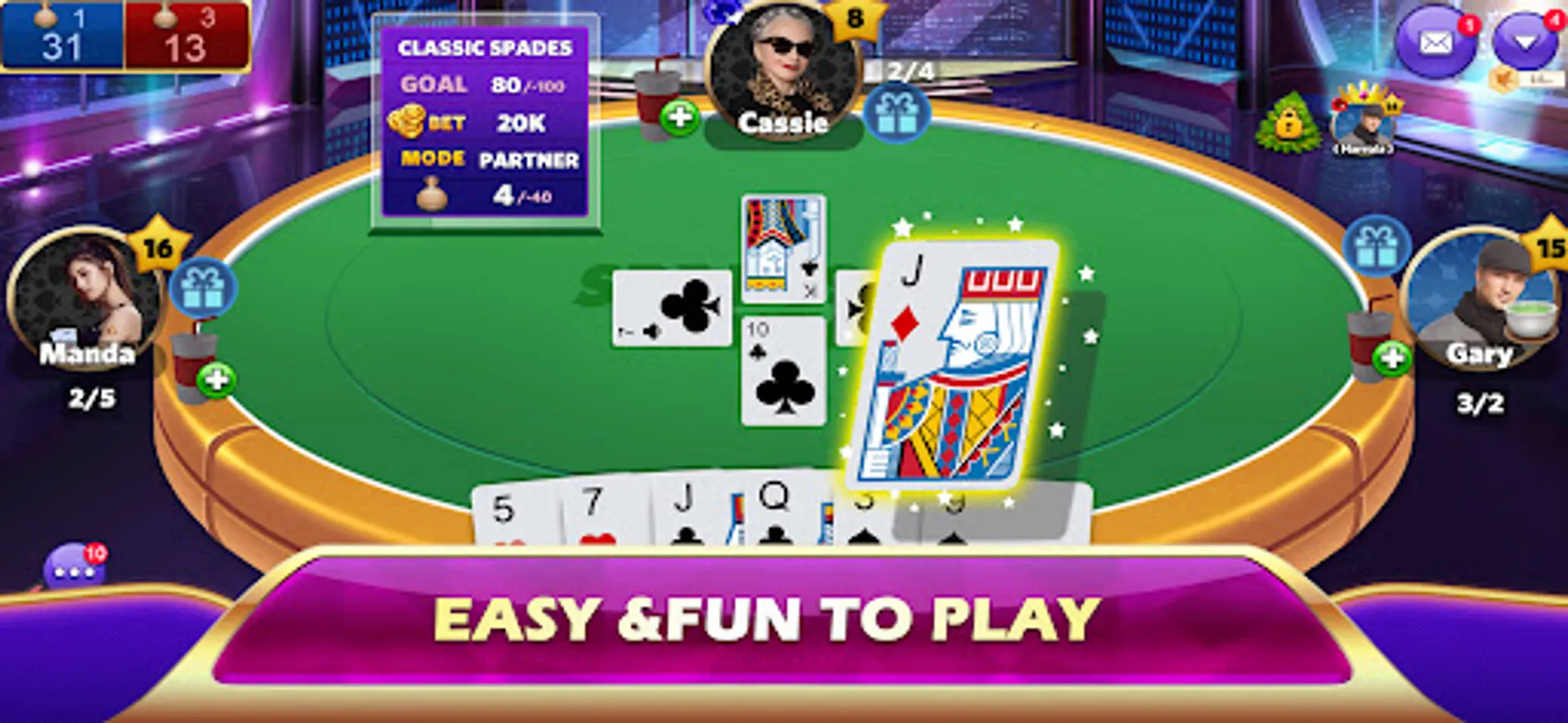 Love our unique features and enjoy various game modes in Spades for huge fun with friends from all over the world! Download now and try now with our daily free coins!