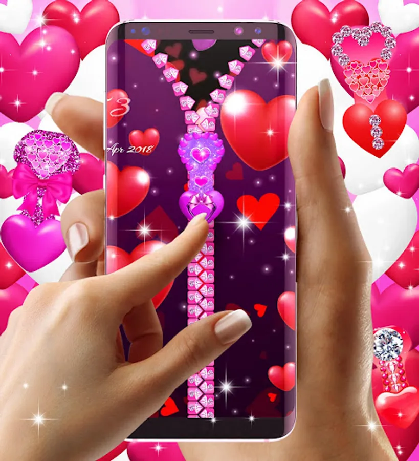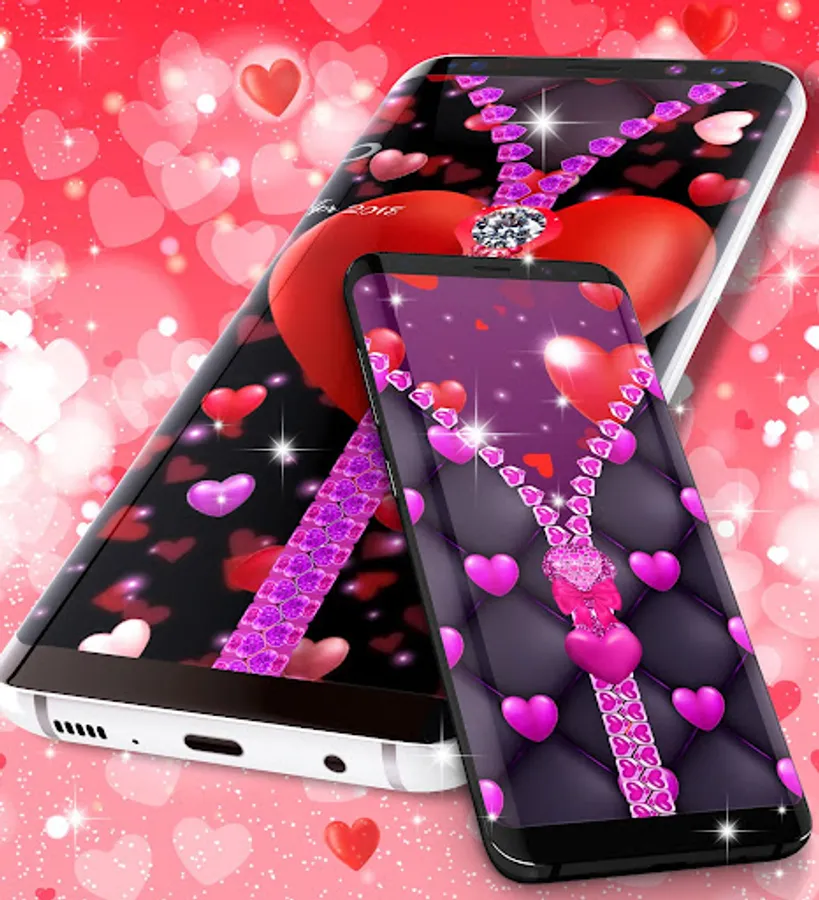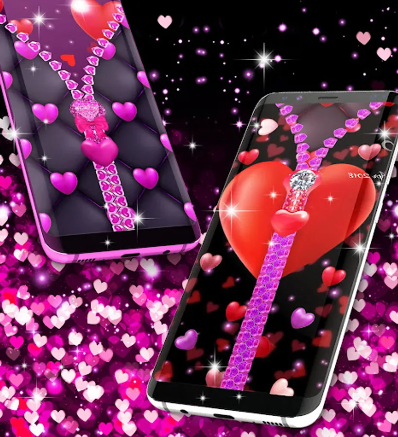 Heart zipper lock screen is an application that lets you change the lock screen on your device with a unique pink theme and heartwarming wallpapers.You will find beautiful hd wallpapers with different hearts in various colors.Choose heart shaped zippers with pink and blue rows and style your lock screen.